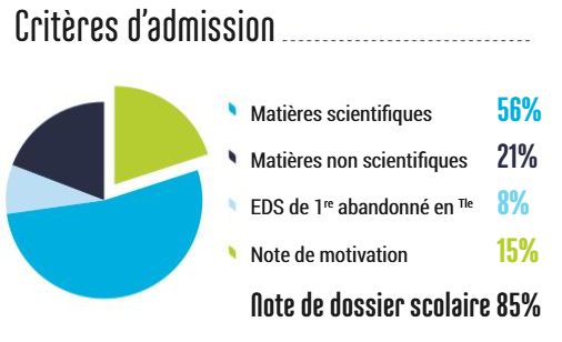 - Les candidats sont sélectionnés sur dossier scolaire, à partir de leurs notes de 1ère et de terminale et sur entretien individuel.
